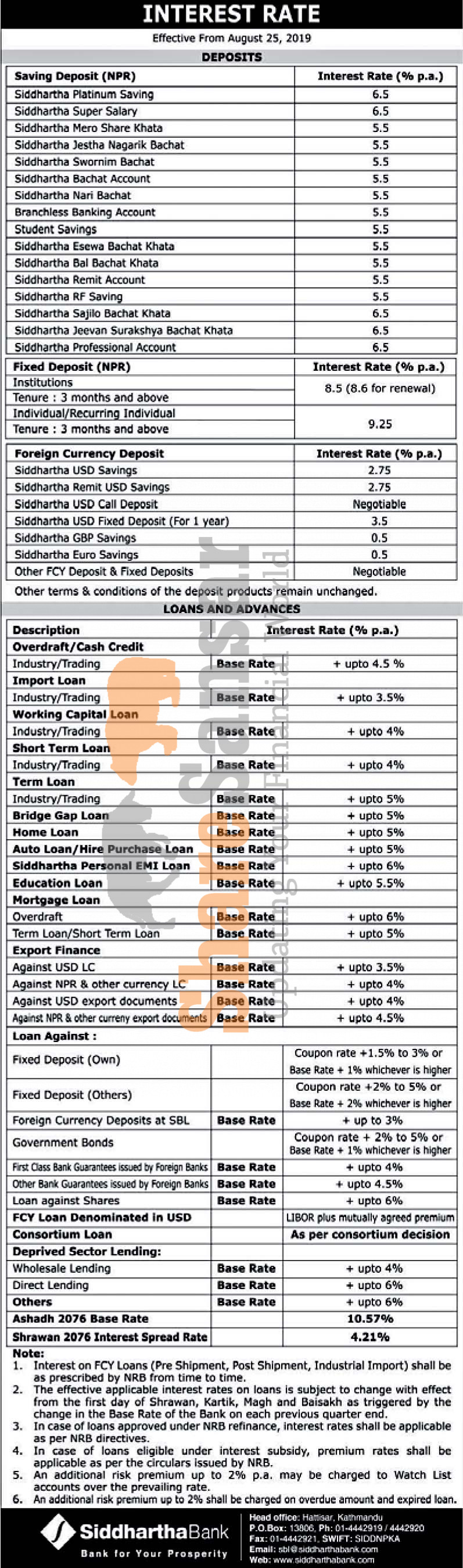 Siddhartha Bank Limited has published a notice regarding new interest rate and its effective from 8th Bhadra, 2076.