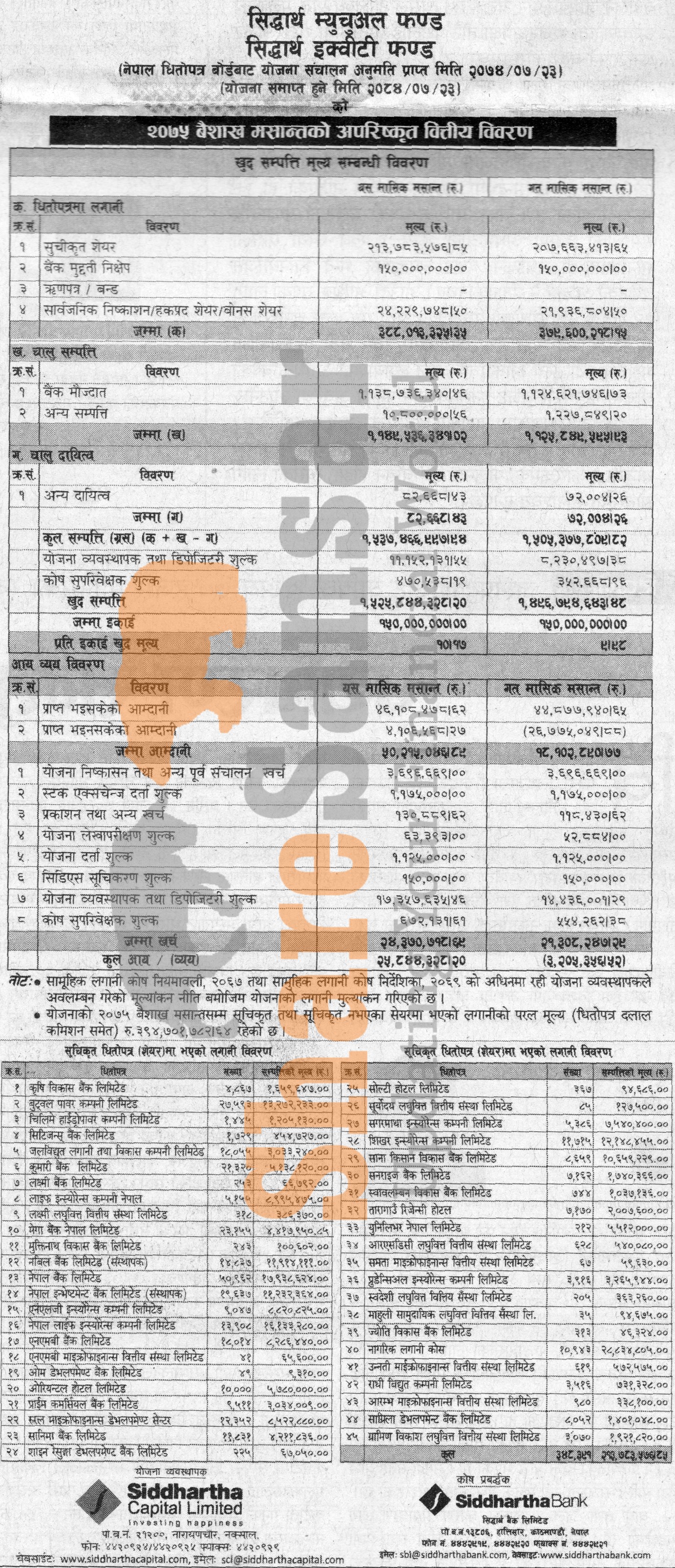 Siddhartha Capital Limited has published “Siddhartha Equity Fund” Net Asset Value (NAV) till Baishakh, 2075.