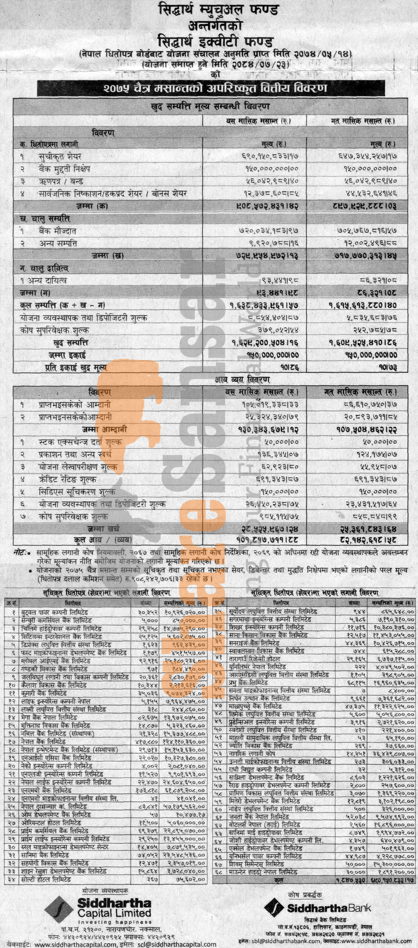 Siddhartha Capital Limited has published “Siddhartha Equity Fund” Net Asset Value (NAV) till Chaitra, 2075.