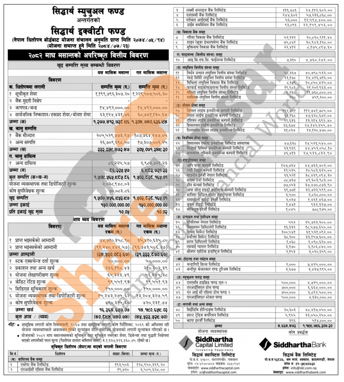 Siddhartha Capital Limited has published “Siddhartha Equity Fund” Net Asset Value (NAV) till Magh, 2082.