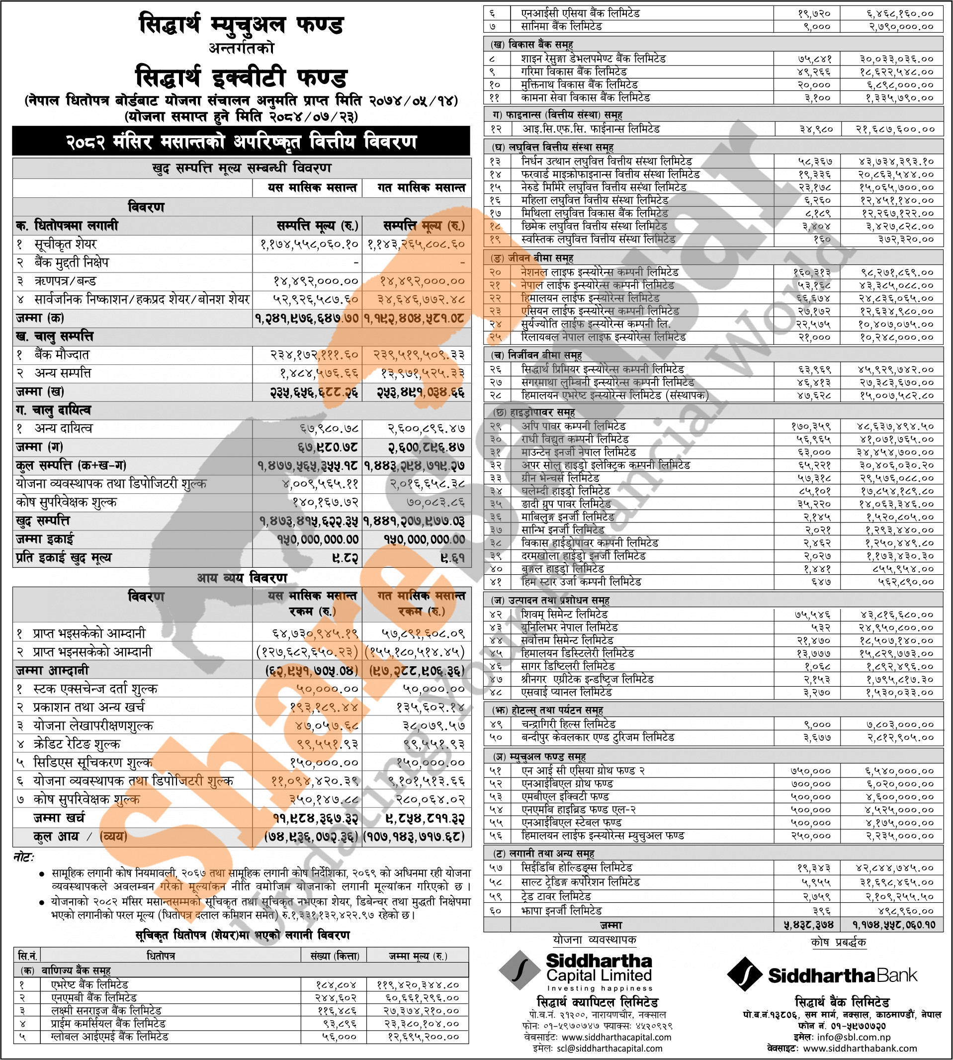 Siddhartha Capital Limited has published “Siddhartha Equity Fund” Net Asset Value (NAV) till Mangsir, 2082.