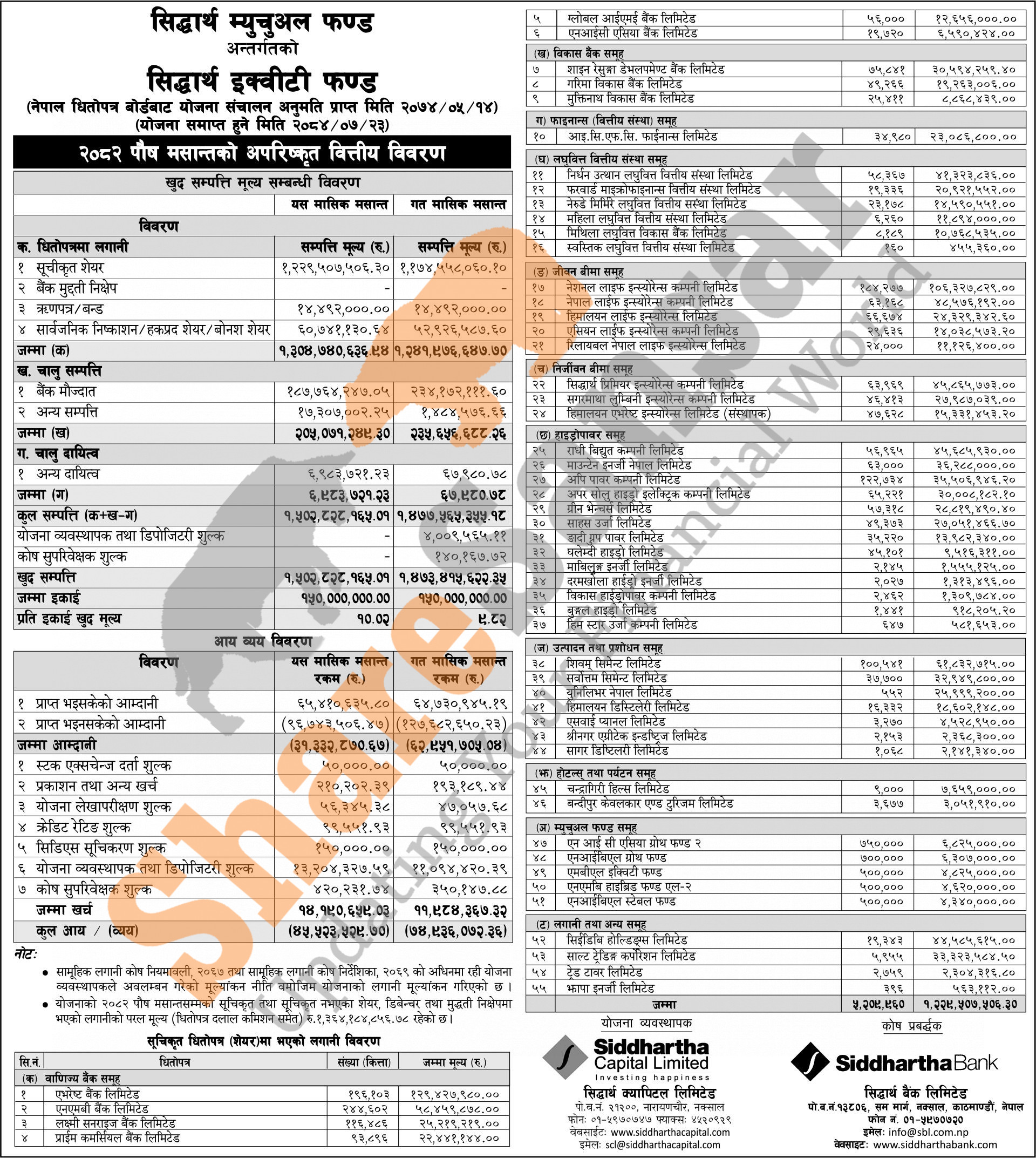 Siddhartha Capital Limited has published “Siddhartha Equity Fund” Net Asset Value (NAV) till Poush, 2082.