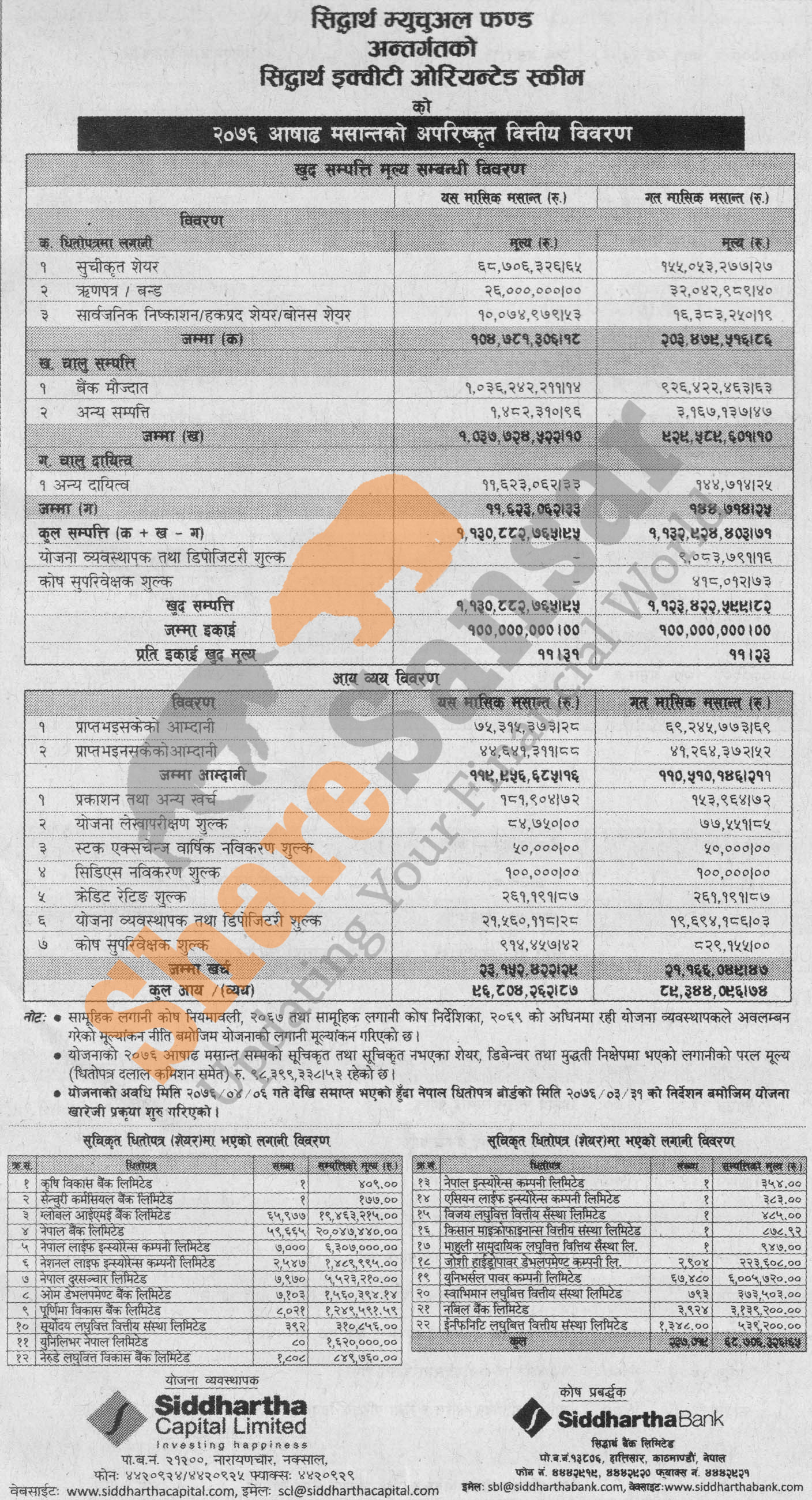 Siddhartha Capital Limited has published “Siddhartha Equity Oriented Scheme” Net Asset Value (NAV) till Ashad, 2076.