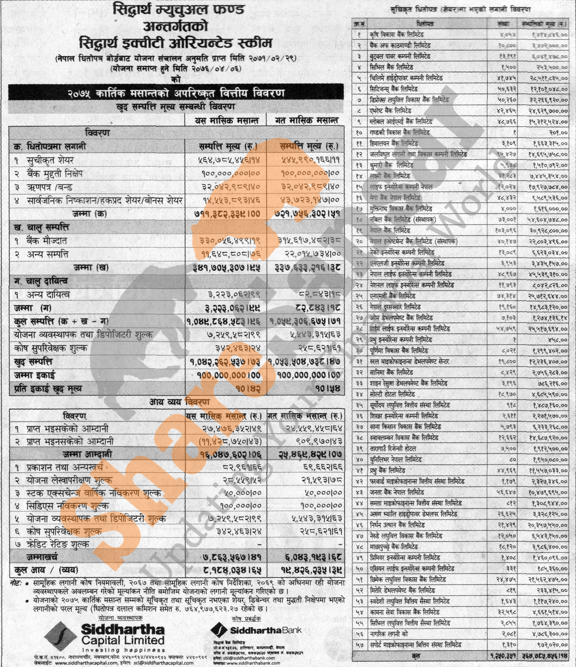 Siddhartha Capital Limited has published “Siddhartha Equity Oriented Scheme” Net Asset Value (NAV) till Kartik, 2075.
