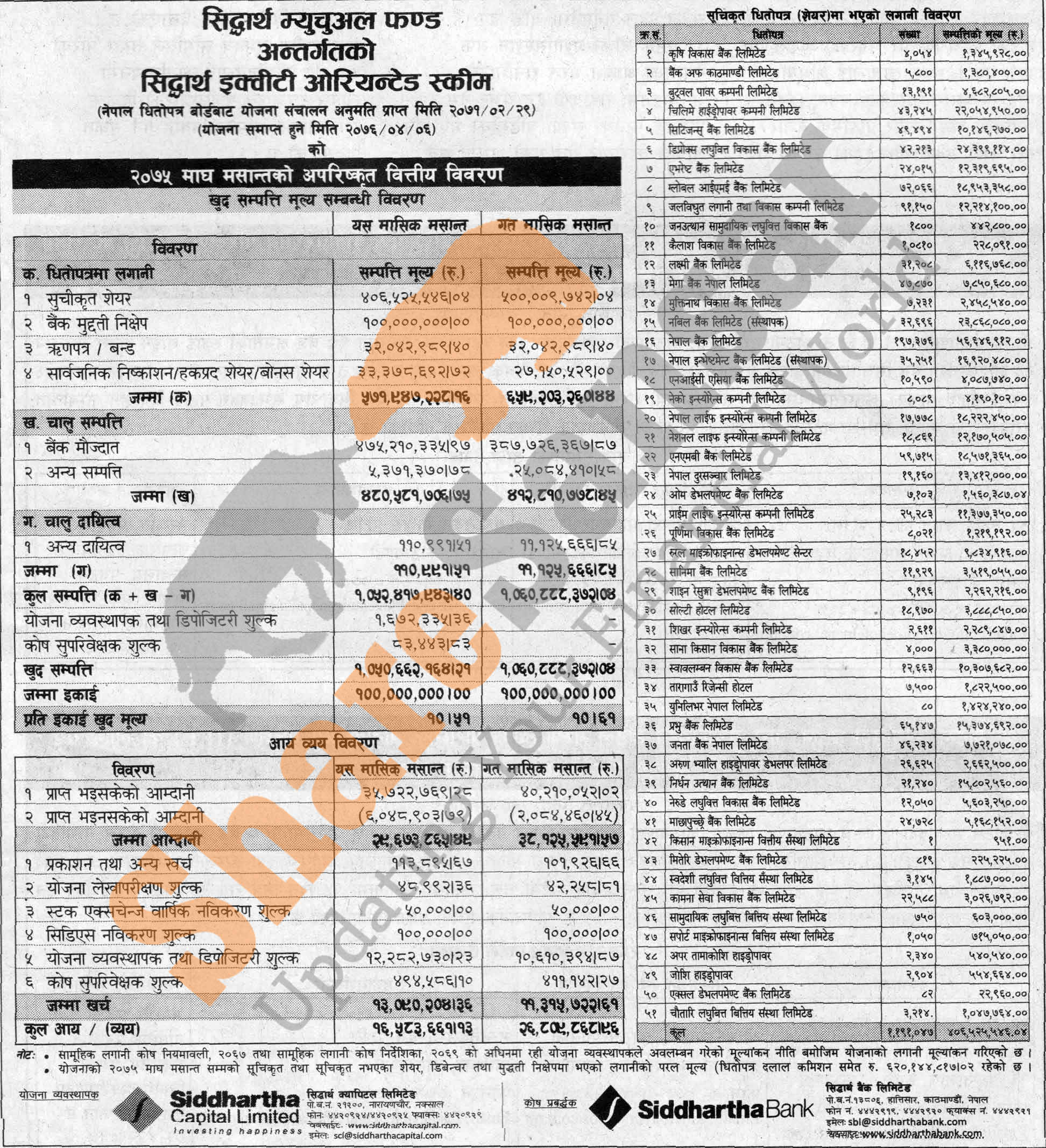 Siddhartha Capital Limited has published “Siddhartha Equity Oriented Scheme” Net Asset Value (NAV) till Magh, 2075.