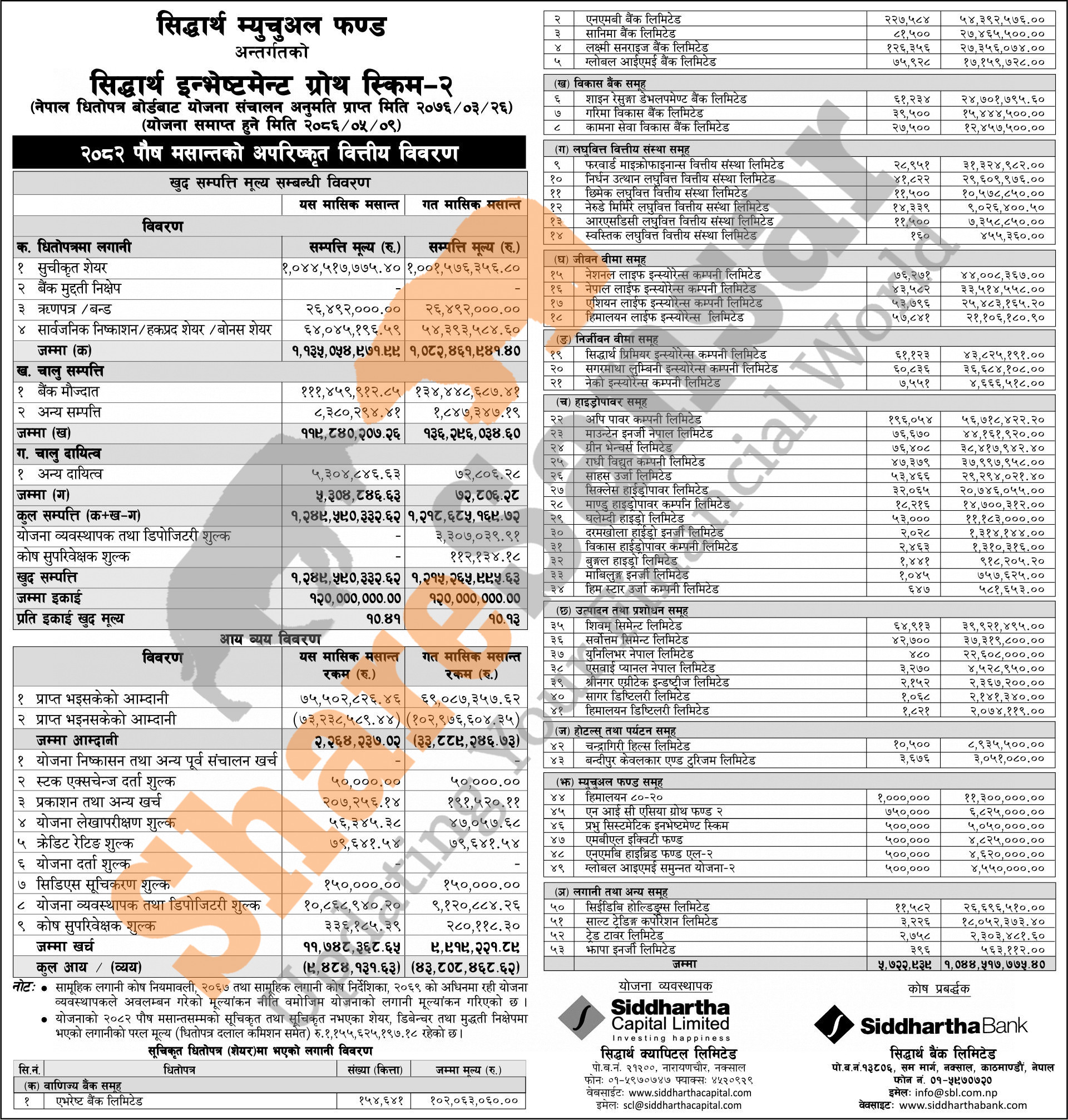 Siddhartha Capital Limited has published “Siddhartha Investment Growth Scheme - 2” Net Asset Value (NAV) till Poush, 2082.