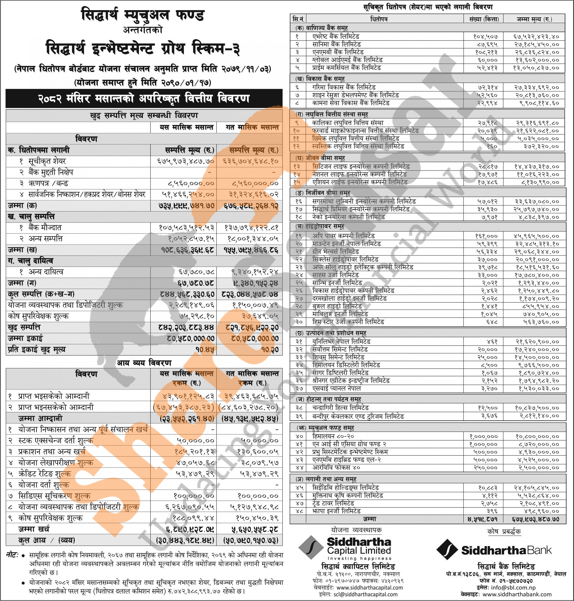 Siddhartha Capital Limited has published “Siddhartha Investment Growth Scheme - 3” Net Asset Value (NAV) till Mangsir, 2082.