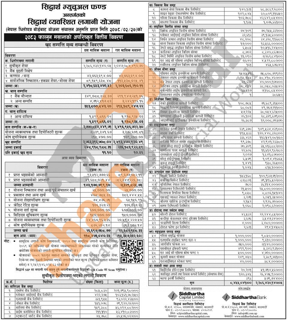 Siddhartha Capital Limited has published “Siddhartha Systematic Investment Scheme” Net Asset Value (NAV) till Falgun, 2082.