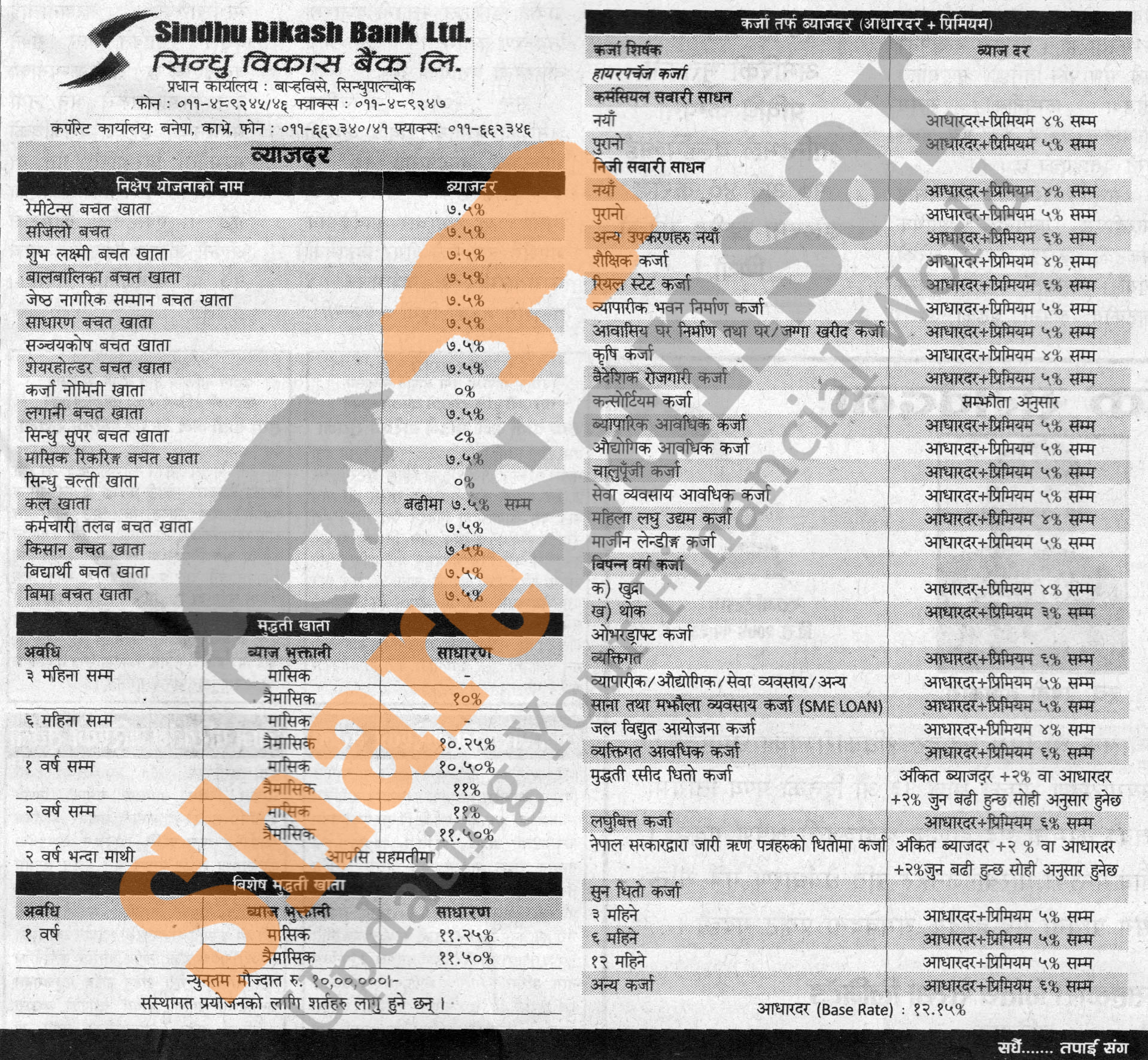 Sindhu Bikas Bank Limited has published a notice regarding a new interest rate.