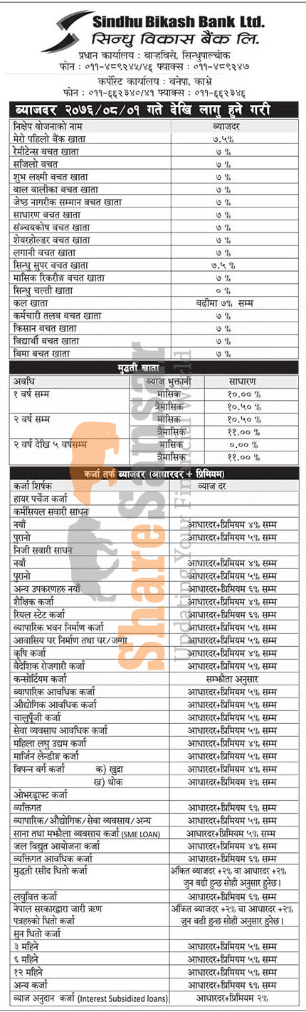 Sindhu Bikas Bank Limited has published a notice regarding new interest rate and its effective from 1st Mangsir, 2076.