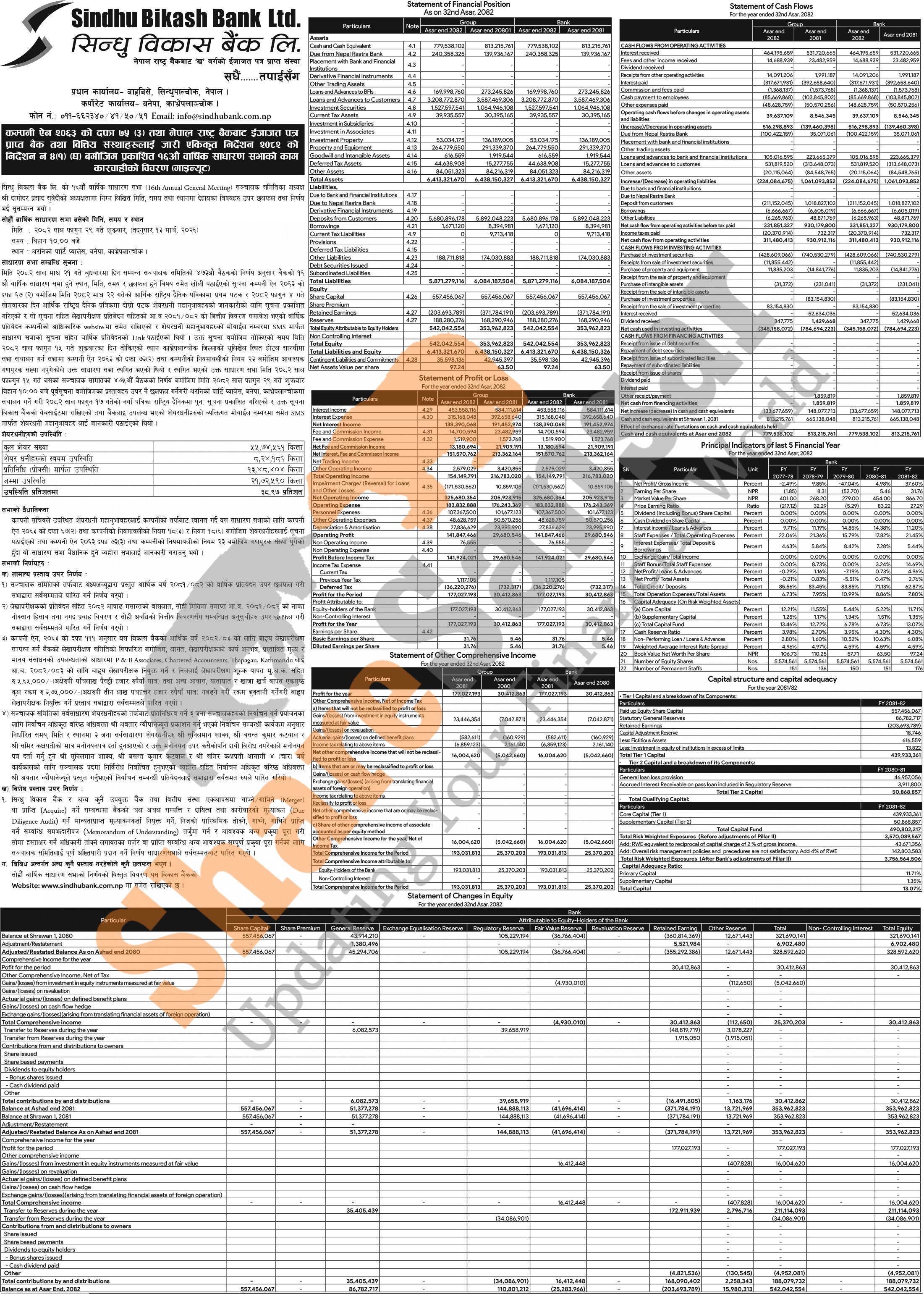 Sindhu Bikas Bank Limited has published the minutes of its 16th AGM and published its annual financial statement of the fiscal year 2081/82.