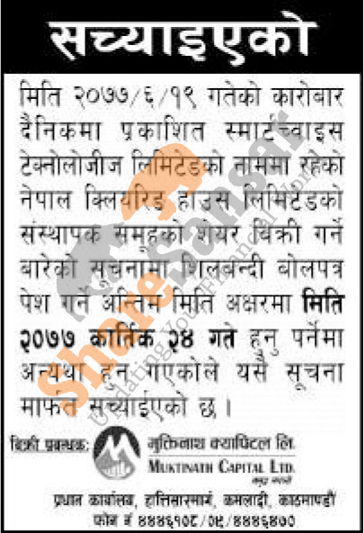 Smart Choice Technologies Limited has amended the auction notice of Nepal Clearing House Limited.