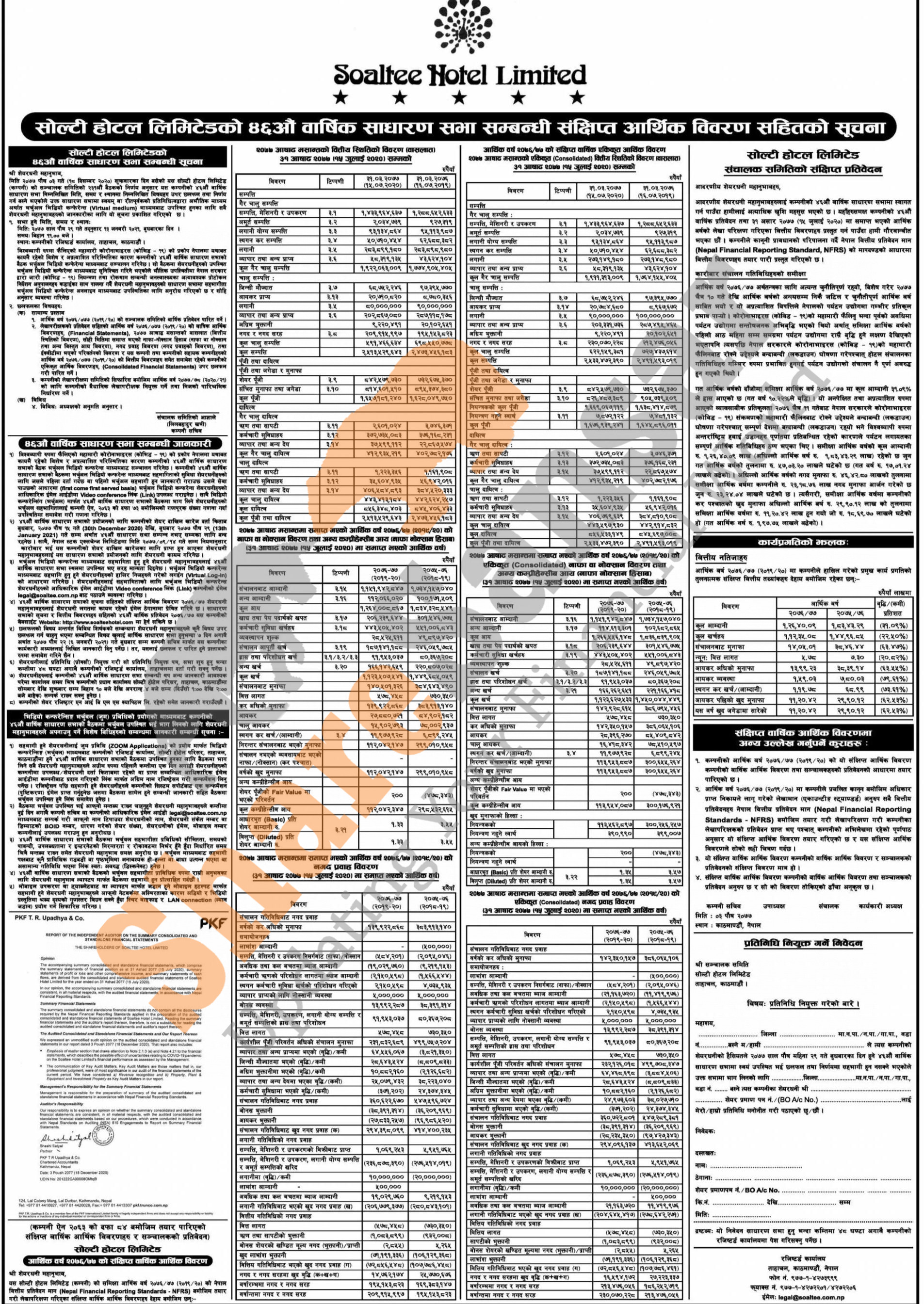 Soaltee Hotel Limited has announced its 46th AGM going to be held on 29th Poush, 2077 and has published audited financial highlight of FY 2076/77.