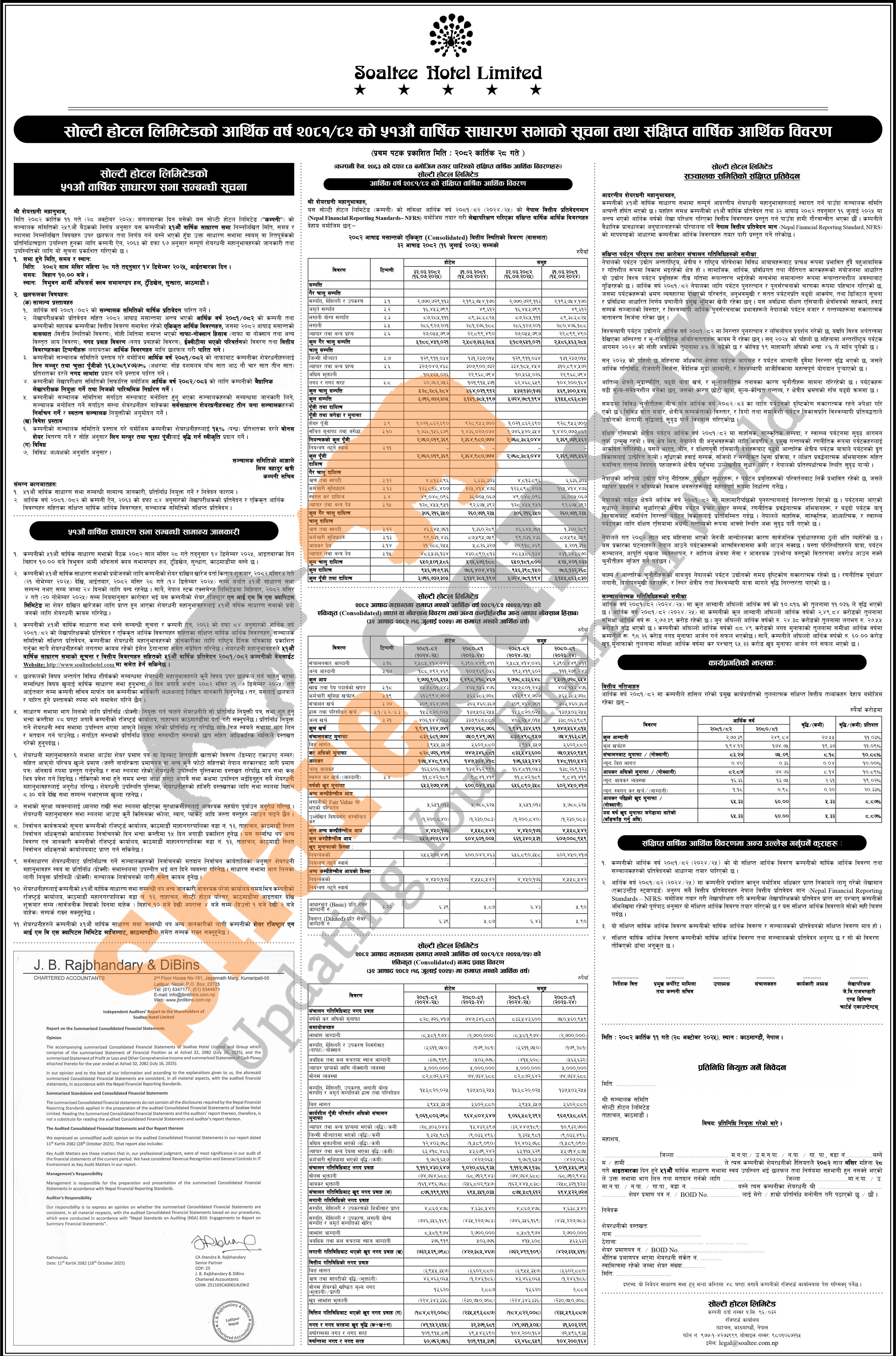 Soaltee Hotel Limited has announced its 51st AGM going to be held on 28th Mangsir, 2082 and has published its financial highlights of fiscal year 2081/82.