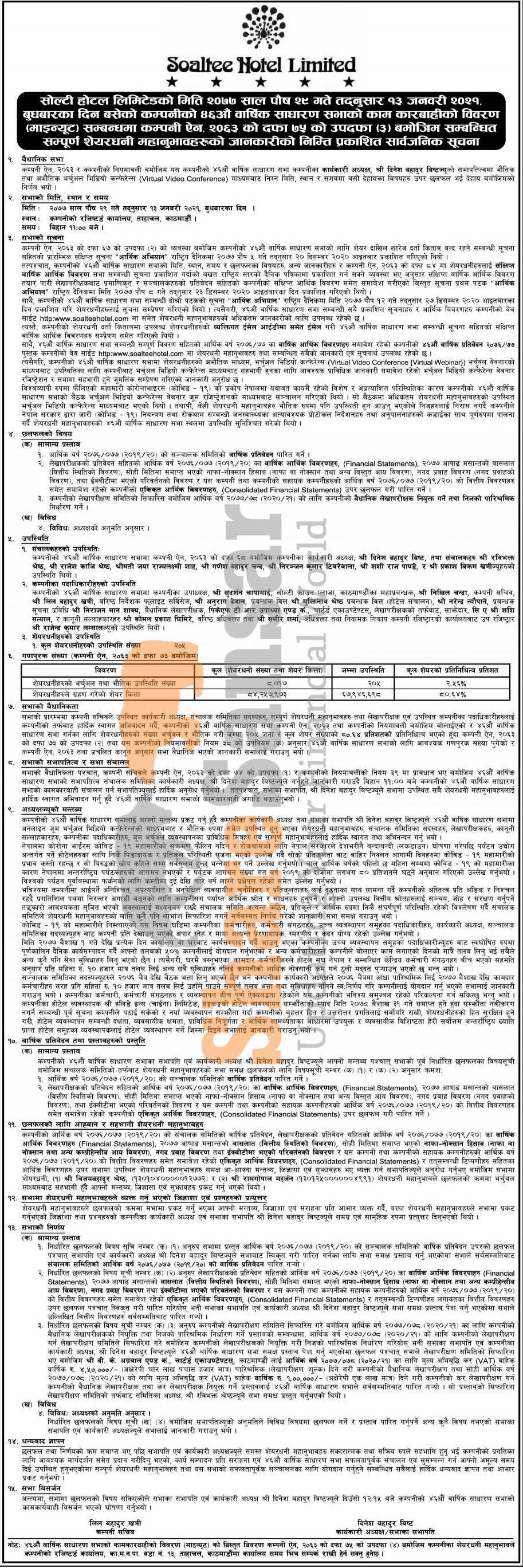 Soaltee Hotels Limited has published its 46th AGM minute.