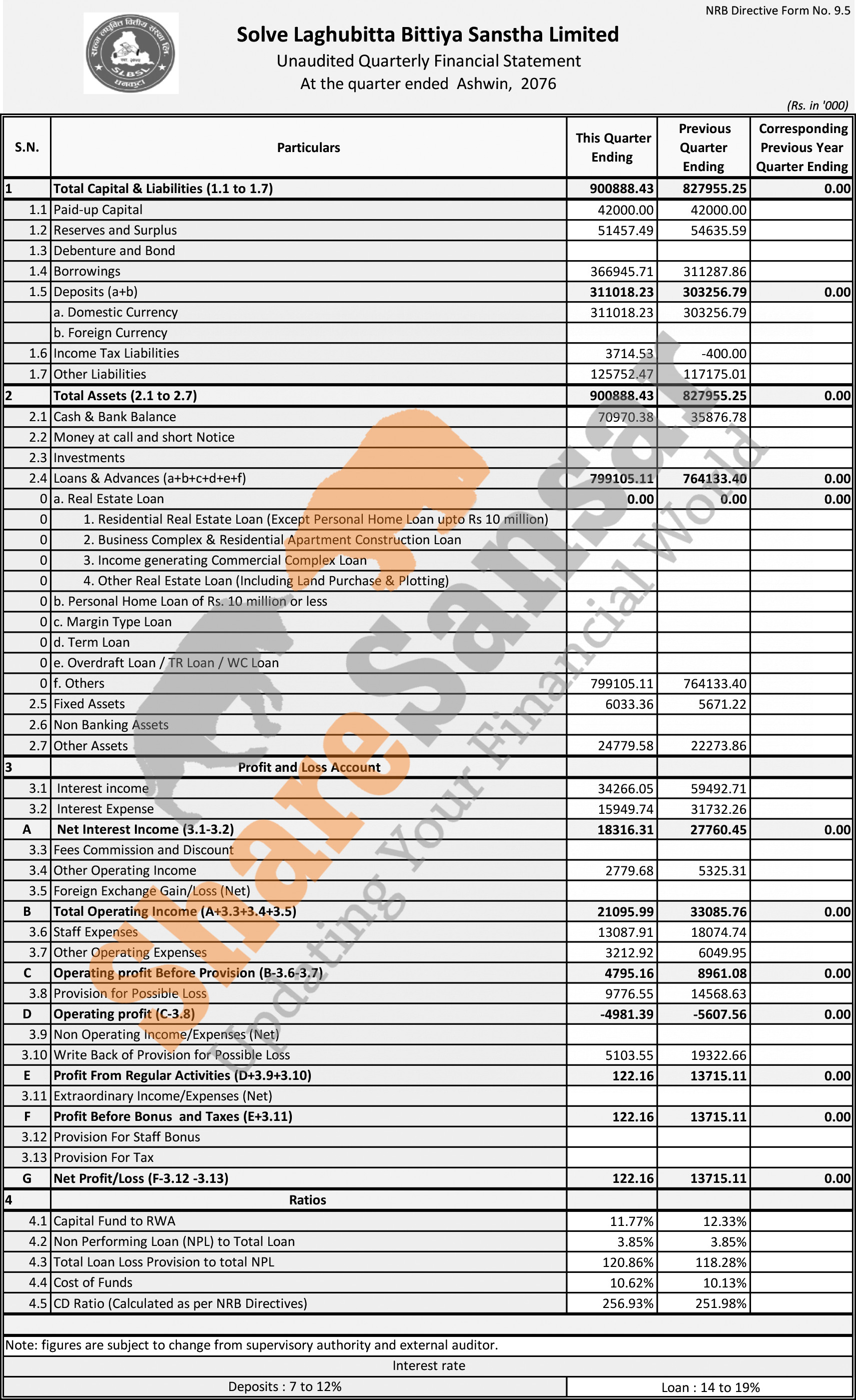 Solve Laghubitta Bittiya Sanstha Limited has posted a net profit of Rs 0.12 million during the 1st quarter of the fiscal year 2076/77.