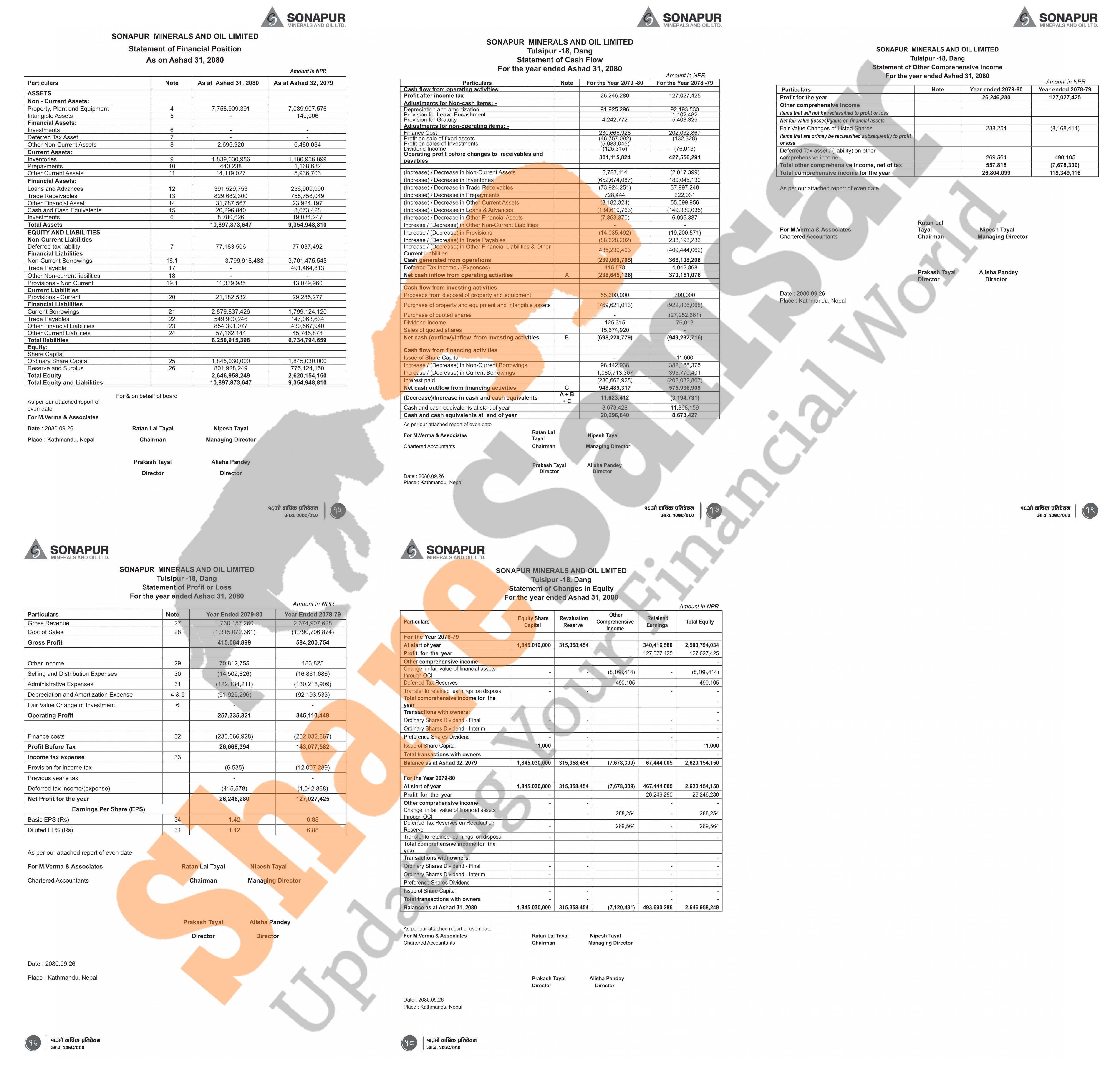 Sonapur Minerals and Oil Limited has published its annual financial statement of the fiscal year 2079/80.