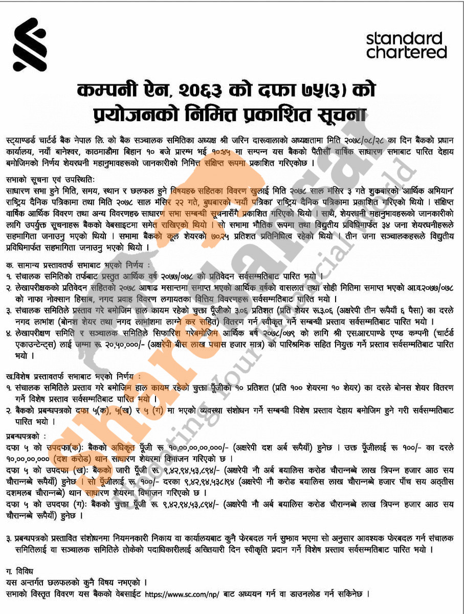 Standard Chartered Bank Limited has published the minutes of its 35th Annual General Meeting (AGM).