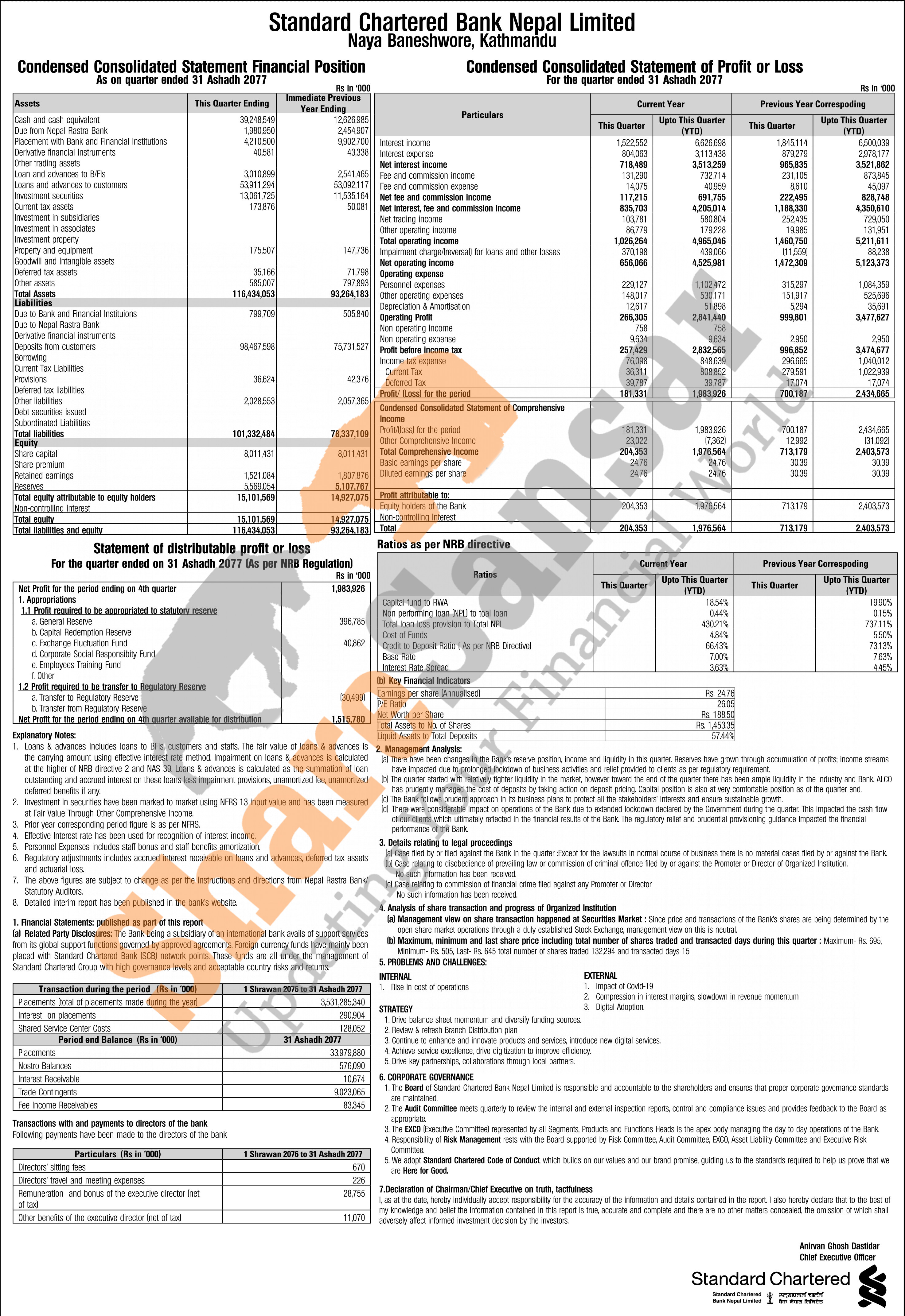 Standard Chartered Bank Nepal Limited has posted a net profit of Rs 1.98 billion and published its 4th quarter company analysis of the fiscal year 2076/77.