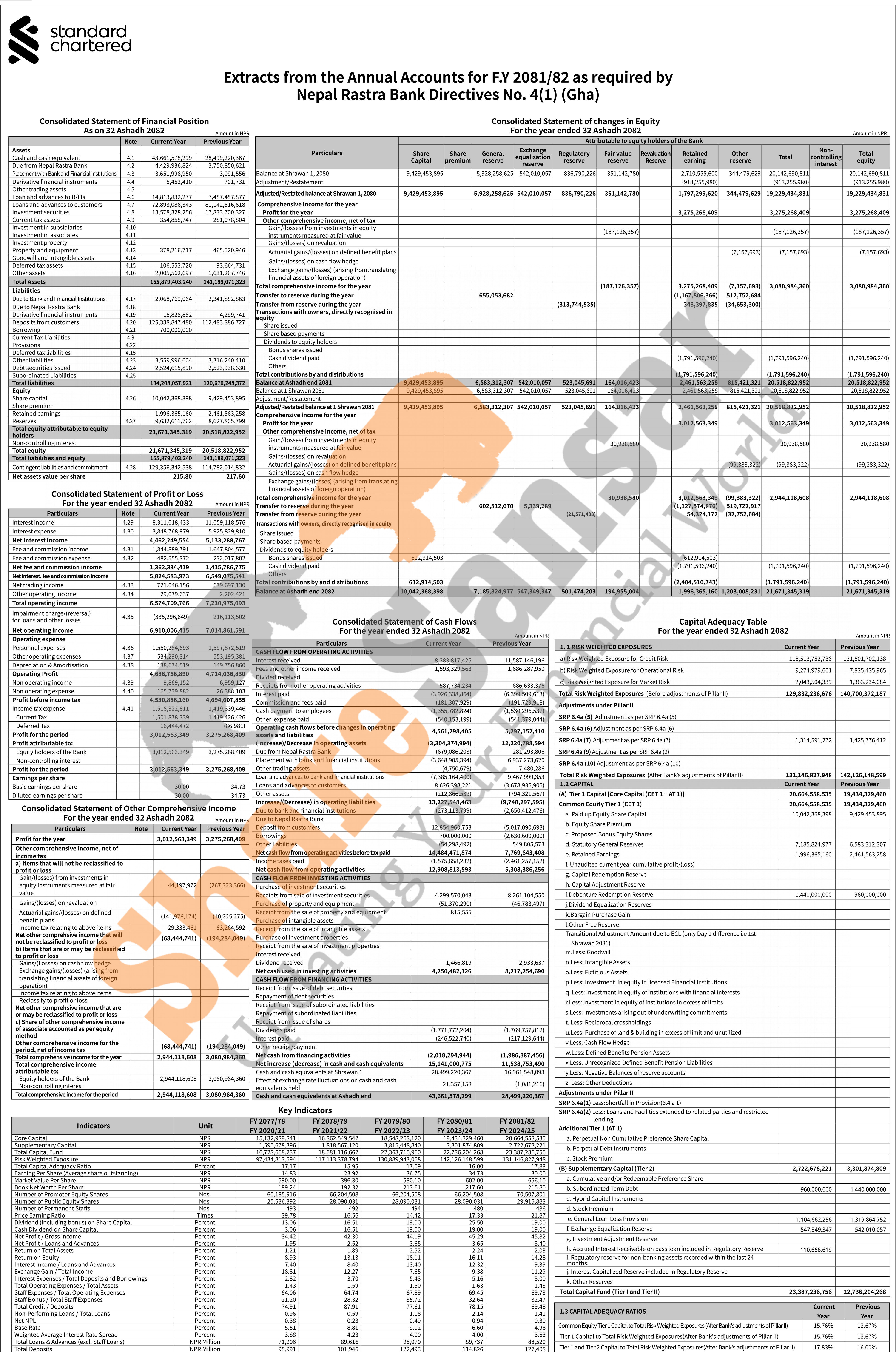 Standard Chartered Bank Nepal Limited has published its annual financial statement of the fiscal year 2081/82.