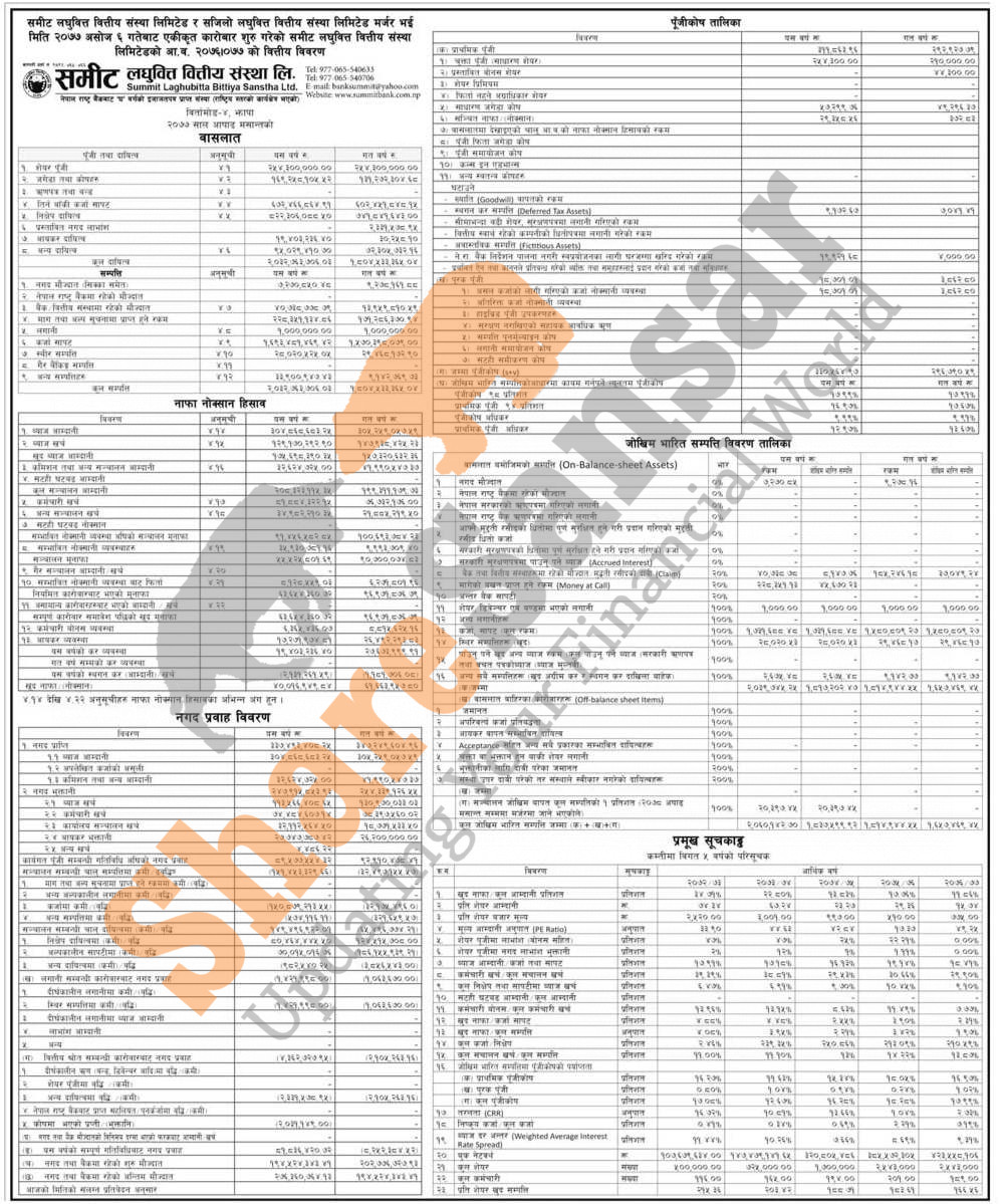 Summit Laghubitta Bittiya Sanstha Limited has published its annual financial highlights of the fiscal year 2076/77.