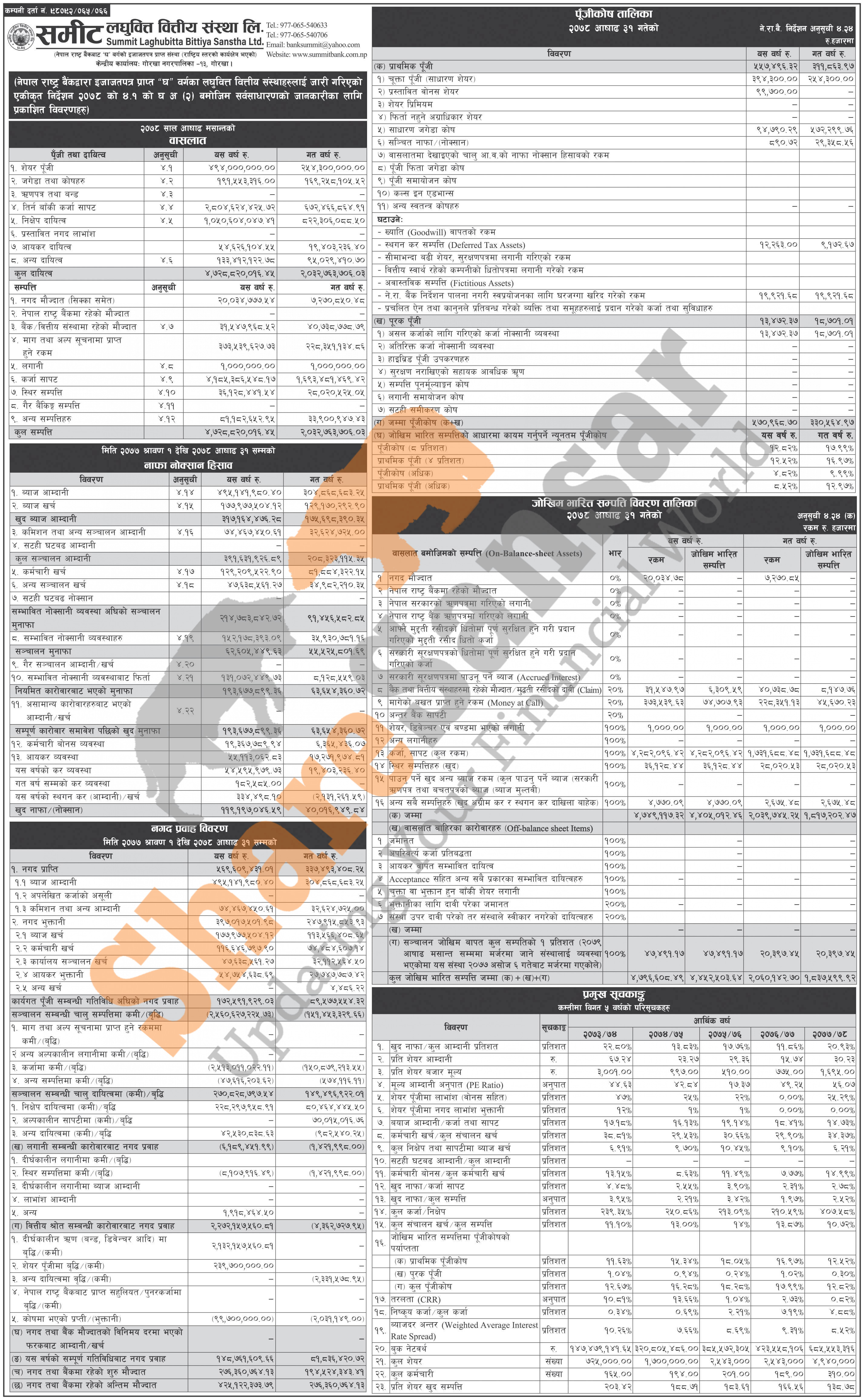 Summit Laghubitta Bittiya Sanstha Limited has published its annual financial highlights of the fiscal year 2077/78.