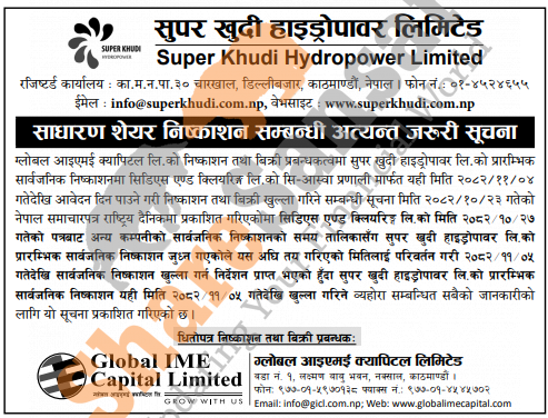 Super Khudi Hydropower Limited has changed its IPO opening date to 5th Falgun, 2082.