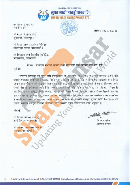 Super Madi Hydropower Limited has published a notice regarding the correction of the book closure date.