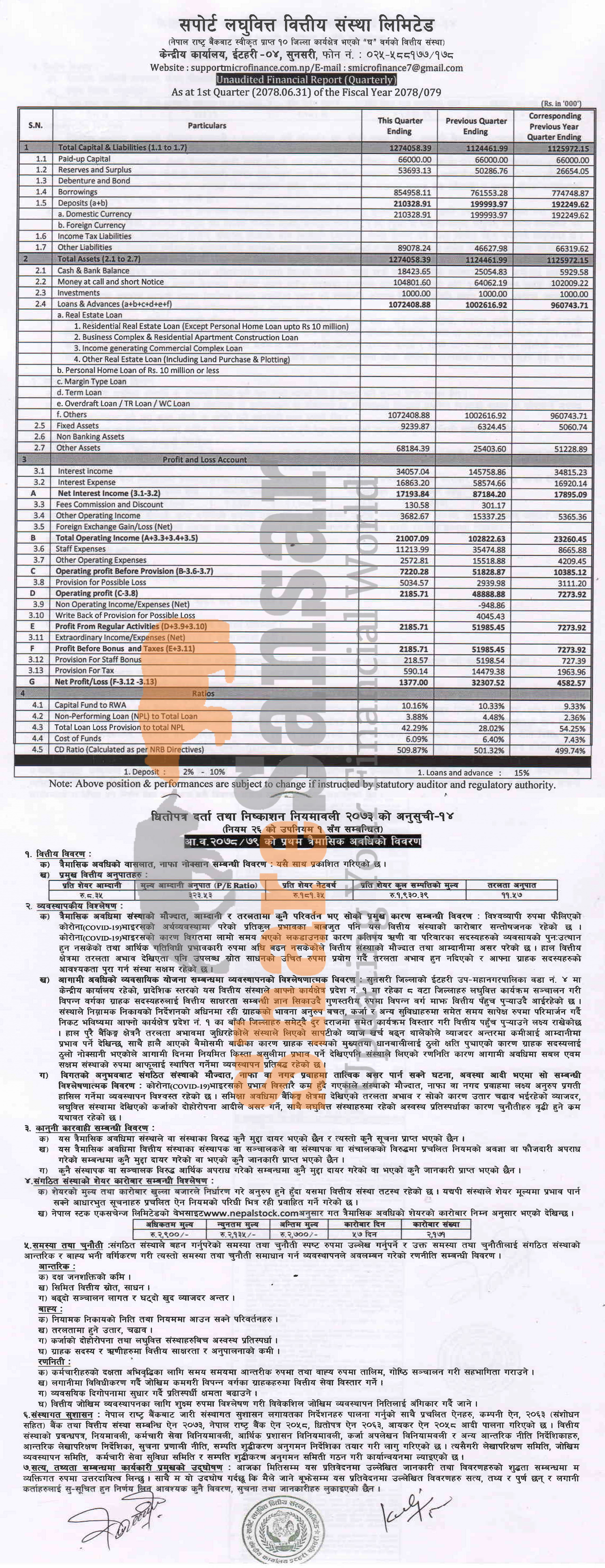 Support Laghubitta Bittiya Sanstha Limited has posted a net profit of Rs 1.37 million and published its 1st quarter company analysis of the fiscal year 2078/79.