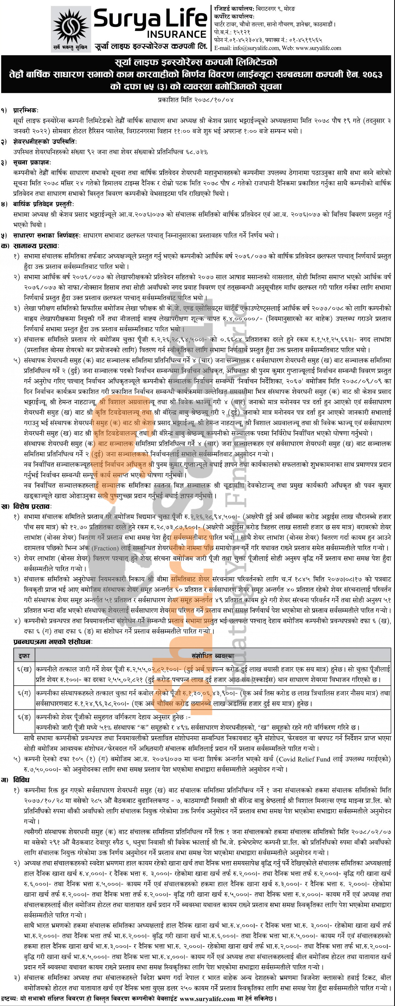 Surya Life Insurance Company Limited has published the minutes of its 13th AGM.