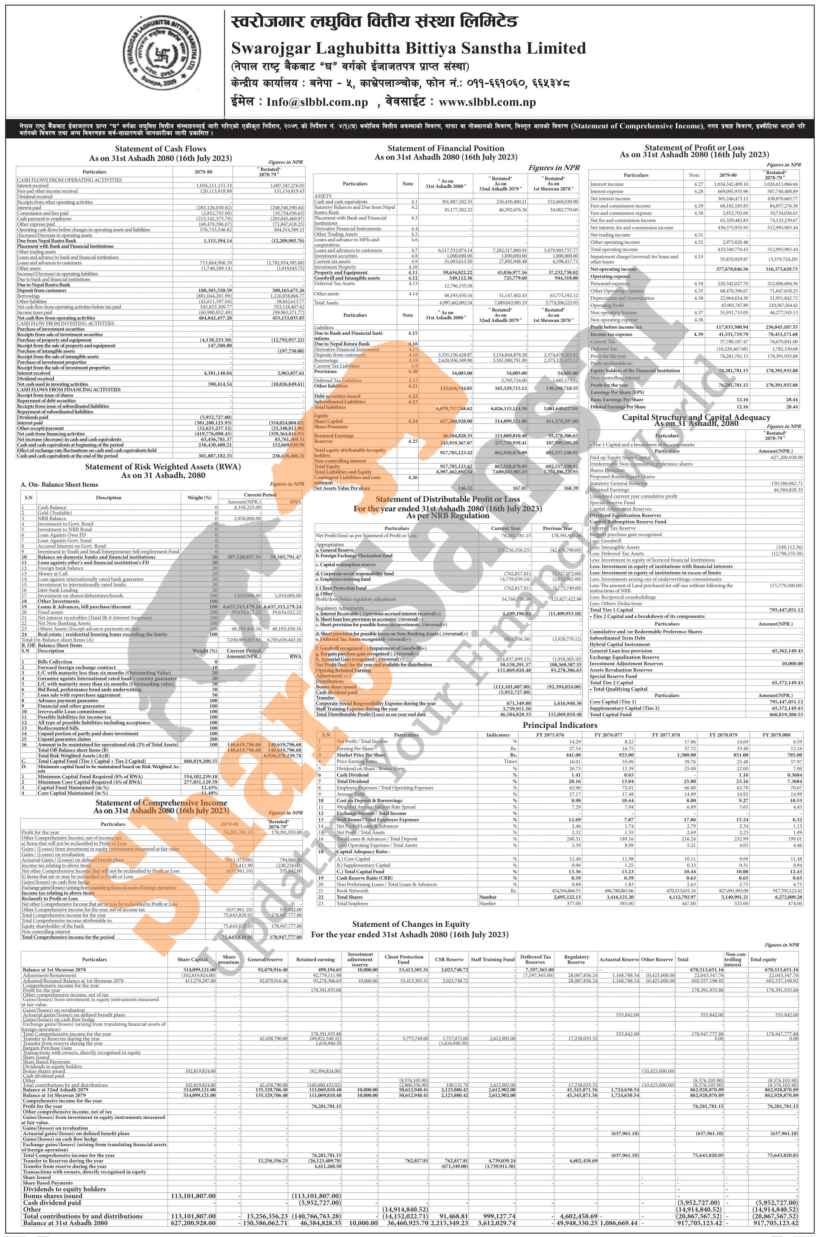 Swarojgar Laghubitta Bittiya Sanstha Limited has published its annual financial statement of the fiscal year 2079/80.