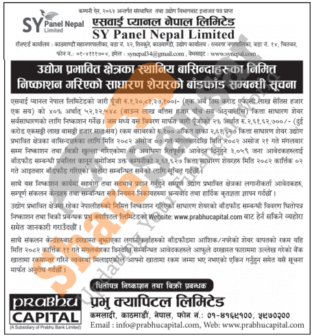 SY Panel Nepal Limited has allotted its 2,61,627 units IPO shares to the project-affected locals of Chitwan District on 2nd Kartik, 2082.