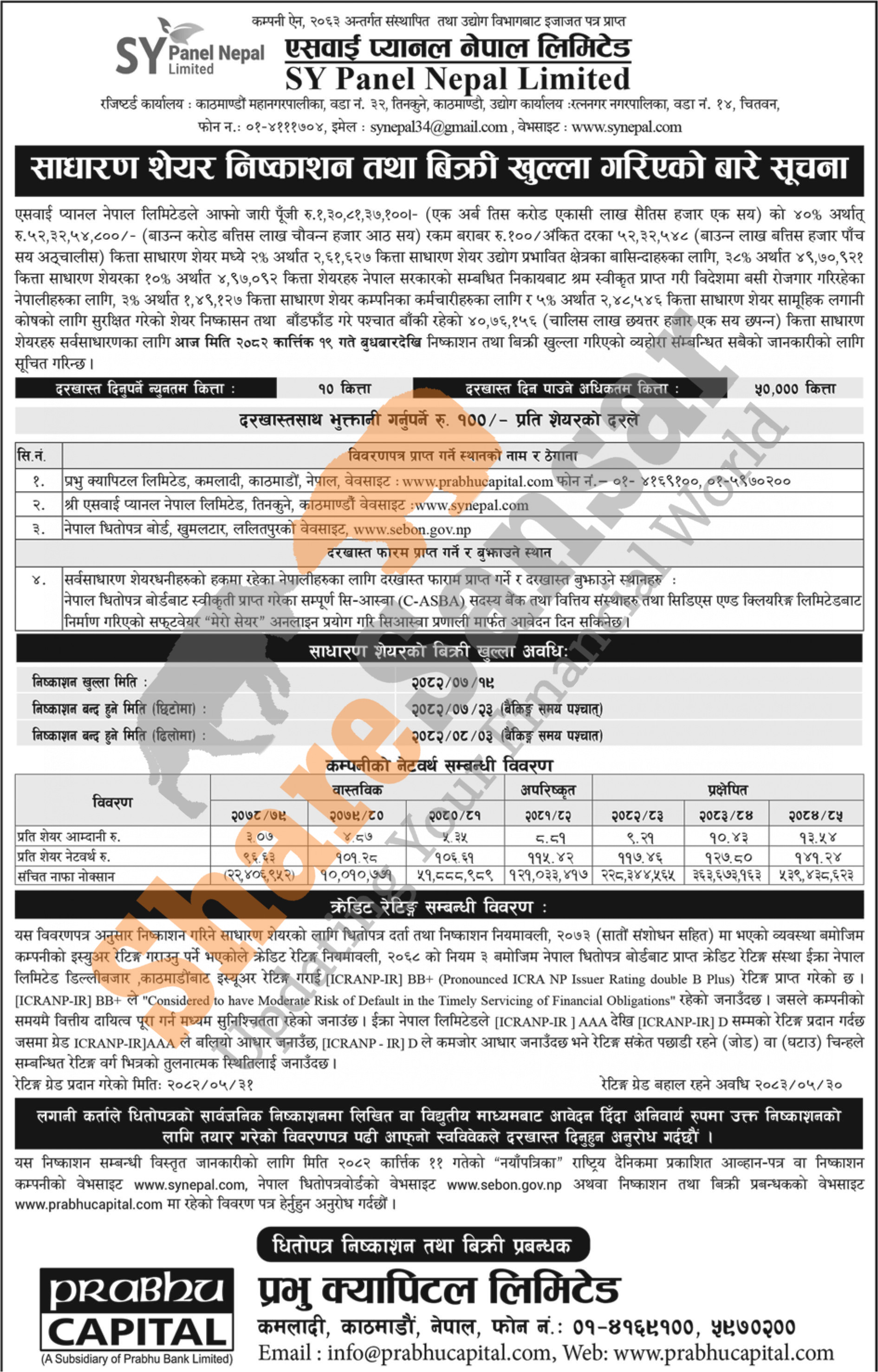 SY Panel Nepal Limited is opening its 40,76,156 units IPO shares to the general public from today (19th Kartik, 2082).