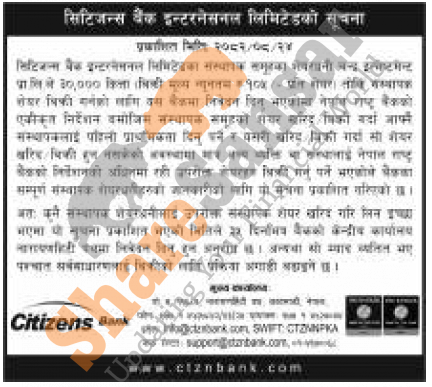 The existing promoter of Citizens Bank International Limited is selling 30,000 shares to its promoter shareholders.