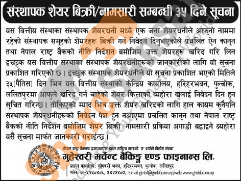 The existing promoter of Guheswori Merchant Banking & Finance Limited is selling shares to its promoter shareholders.