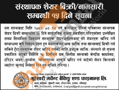 The existing promoter of Guheswori Merchant Banking & Finance Limited is selling shares to the interested person/institutions.