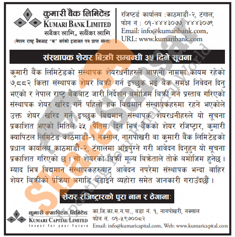The existing promoter of Kumari Bank Limited is selling 7,882 shares to its promoter shareholders.