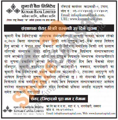 The existing promoter of Kumari Bank Limited is selling 8,780 shares to its promoter shareholders.