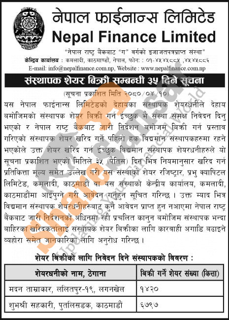 The existing promoter of Nepal Finance Limited is selling 8,217 shares to its promoter shareholders.