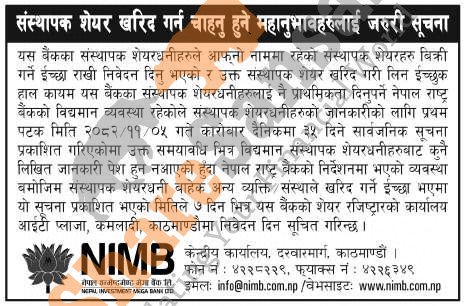 The existing promoter of Nepal Investment Mega Bank Limited is selling shares to the other person/institutions.