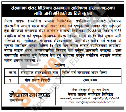 The existing promoter of Nepal Life Insurance Company Limited is selling 2,00,000 shares to its promoter shareholders.