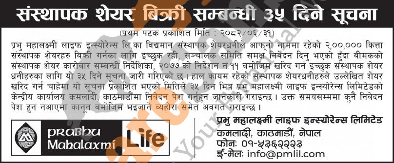The existing promoter of Prabhu Mahalaxmi Life Insurance Company Limited is selling 2,00,000 shares to its promoter shareholders.