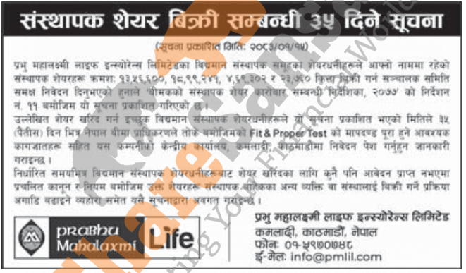 The existing promoter of Prabhu Mahalaxmi Life Insurance Company Limited is selling 37,48,903 shares to its promoter shareholders.