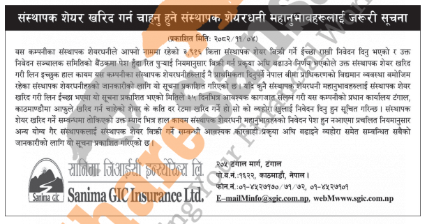 The existing promoter of Sanima GIC Insurance Limited is selling 3,916 shares to its promoter shareholders.