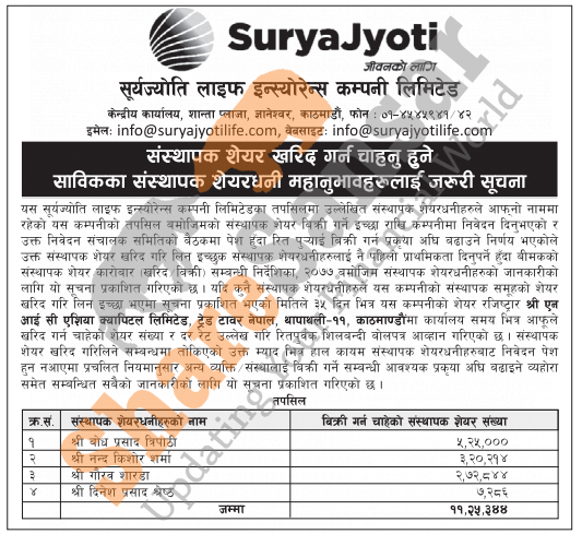 The existing promoter of SuryaJyoti Life Insurance Company Limited is selling 11,25,344 shares to its promoter shareholders.