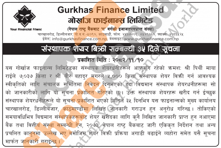 The existing promoters of Gurkhas Finance Limited is selling 12,037 shares to its promoter shareholders.