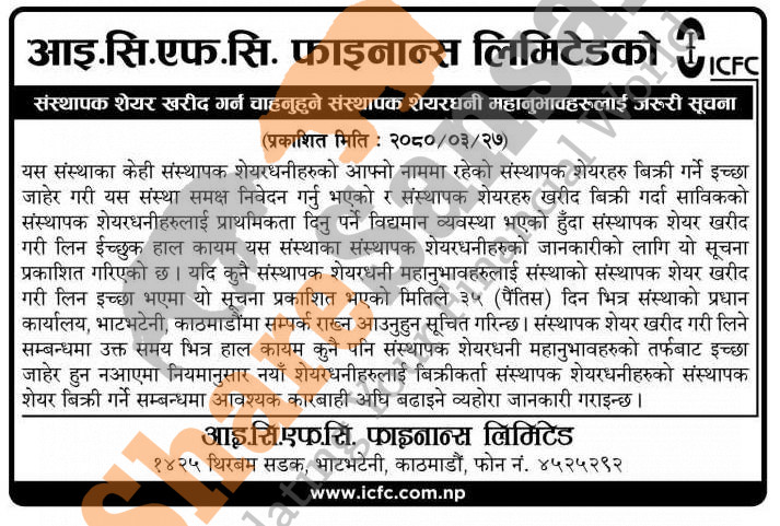 The existing promoters of ICFC Finance Limited is selling shares to its promoter shareholders.