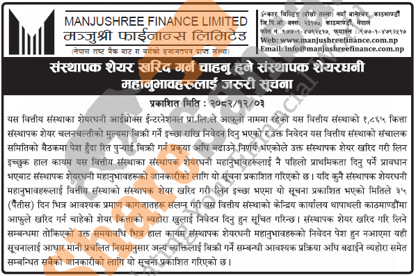 The existing promoters of Manjushree Finance Limited is selling 1,865 shares to its promoter shareholders.