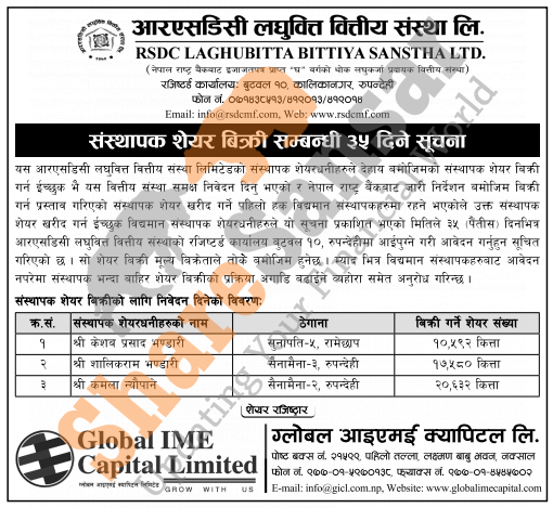 The existing promoters of RSDC Laghubitta Bittiya Sanstha Limited is selling 48,804 units shares to promoter shareholders.
