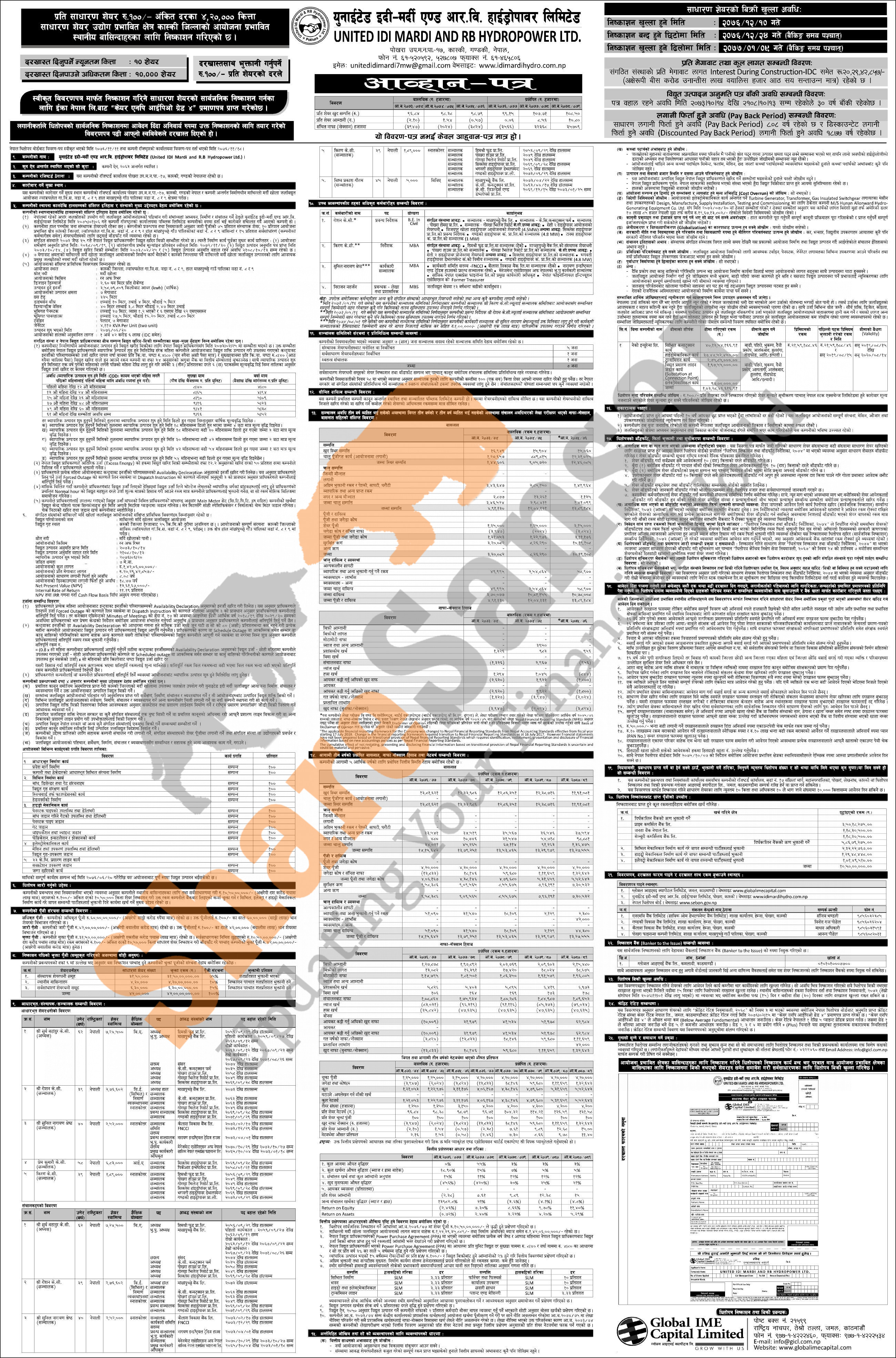 United IDI Mardi and RB Hydropower Company Limited is issuing its 4,20,000 units IPO shares the project affected local residents of Kaski District from (10th Chaitra, 2076).